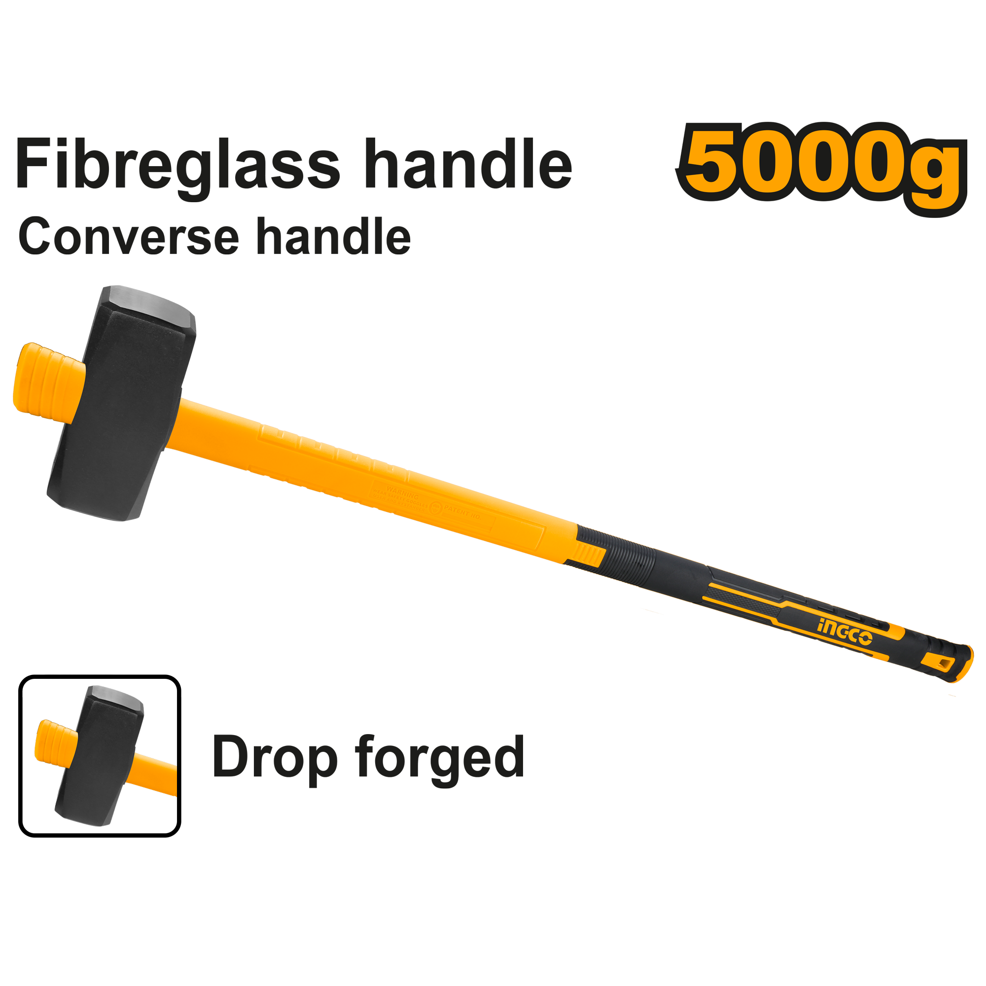 Кувалда с фибергласовой ручкой 5 кг INGCO HSTH03058D - прочный, надежный и долговечный в эксплуатации ручной инструмент для выполнения тяжелых ударных работ, связанных с обработкой камня или демонтажом различных конструкций. Фибергласовая рукоятка из стекловолокна PP амортизирует удар и обрезиненная рукоятка TPR не скользит в руке что обеспечивает комфортное применение при работе. Специальная форма рукоятки выполнена под конус, что препятствует вылету бойка при выполнении тяжелых ударных работах. Вес бойка: 5 кг; Общая длина 900 мм; Форма бойка: квадратная 60 мм; Материал бойка - термическая обработка, кованая головка из стали марки 45.; Материал рукояти: фиберглас обрезиненный. Фибегласовая ручка размером 800 мм. Вес: Нетто - 6,1 кг, Брутто - 7 кг. Параметры упакованного товара: Длина - 93 см., Ширина - 17 см., Высота - 8 см.
